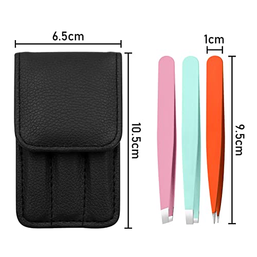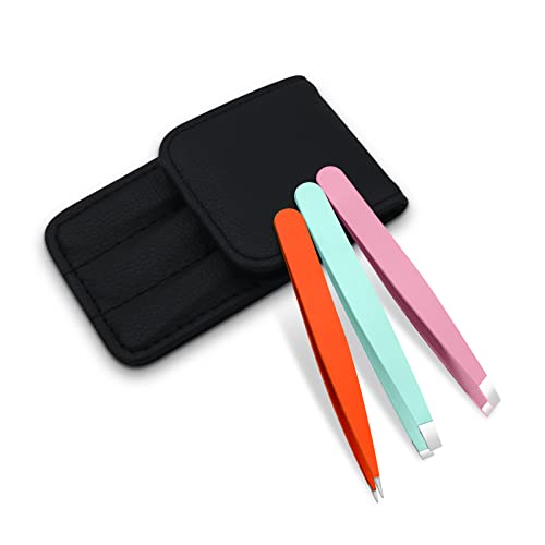 Pinkiou Set di pinzette colorate per la rimozione dei capelli in acciaio inox, con custodia nera (3 pezzi)