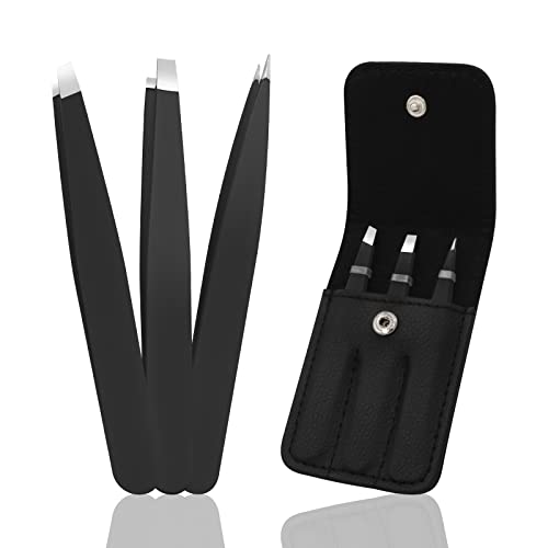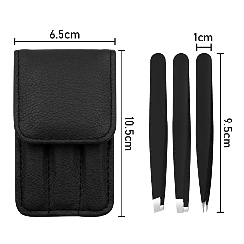 Pinkiou Pinzette Sopracciglia Professionali per Uomini e Donne, Strappare Le Sopracciglia, Rimuovere i Peli Del Viso Incarniti - Set 3 Pezzi con Custodia in Pelle