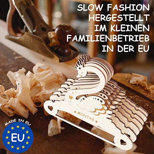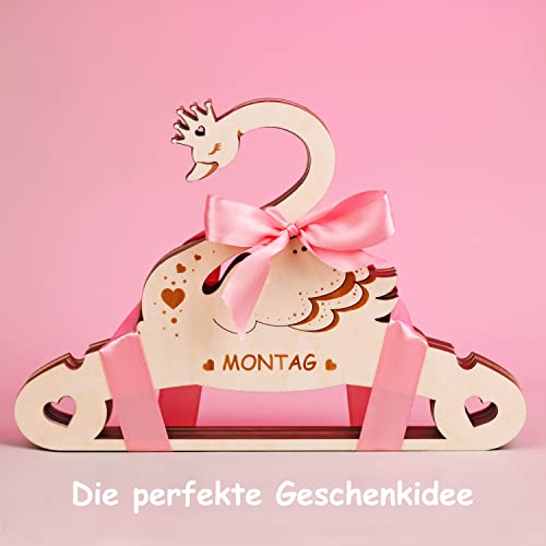 PinkZebra Set di 7 grucce per bambini nei giorni della settimana, apprendimento in legno, 100% ecologico, made in EU, decorazione per la cameretta dei bambini, grucce in legno, cigno