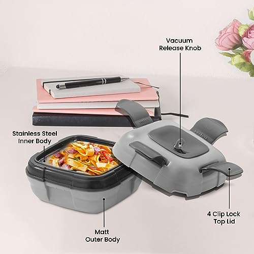Pinnacle - Contenitore termico per il pranzo a prova di perdite, per adulti e bambini, con valvola di rilascio del calore, set di 2/2 misure, colore: grigio