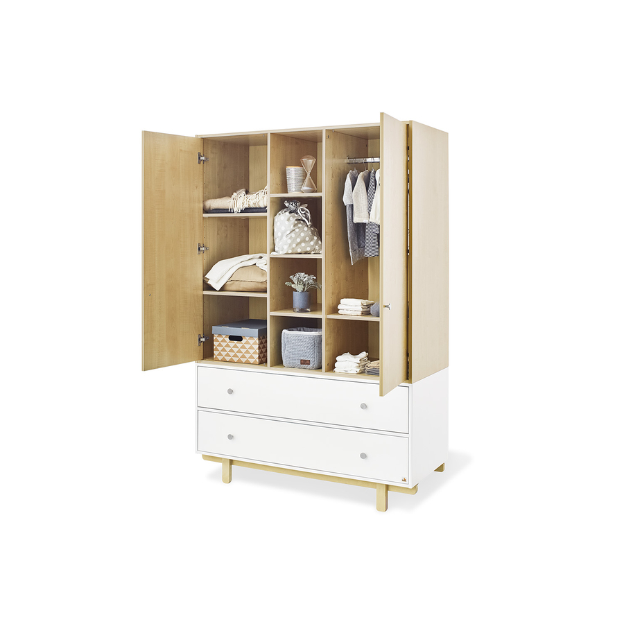 Sviluppato, testato, e commercializzato con grande attenzione ai dettagli, Pinolino offre un assortimento di alta qualità di mobili, giocattoli e accessori per bambini dal 1997. Pinolino è sinonimo di valori come famiglia, felicità e sicurezza. Abitazione moderna Il grande mix di colori e materiali di Boks, combinato con un design moderno, rendono la cameretta del tuo bambino unica. Per tutti quelli che amano essere moderni e stilosi. Dettagli del prodotto: Colore: bianco/legno naturale Materiale parte superiore: Truciolato Materiale parte inferiore: MDF, laccato Materiale maniglie: Acciaio inossidabile spazzolato Materiale zoccolo: MDF, legno compensato laccato Dimensioni: Ampiezza x Lunghezza x Altezza 126 x 57 x 190 cm 2 ante con chiusura soft-close 2 cassetti con funzione Self-Soft-Close 4 sezioni aperte 6 ripiani regolabili in altezza 1 asta appendiabiti orizzontale Attenzione: Le decorazioni NON sono incluse nella spedizione!