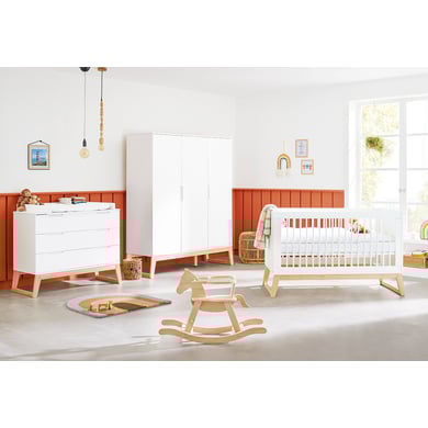 Con grande attenzione ai dettagli, Pinolino sviluppa, testa, produce e commercializza la sua gamma di mobili, accessori e giocattoli per bambini di alta qualità e dal 1997 progetta con essa gli spazi abitativi dei più piccoli. Così facendo, Pinolino è l'acronimo dei valori famiglia, felicità, sicurezza e individualità. La Garanzia Pinolino -Plus comprende l'estensione del periodo di garanzia legale a 10 anni dalla data di acquisto. Dimostra quanto l'azienda sia convinta dell'eccezionale qualità dei suoi prodotti. Una moderna cameretta per bambini in 3 parti, composta da un lettino con struttura a doghe e sponde trasformabili, un ampio fasciatoio con piano fasciatoio e un grande armadio. dettagli del prodotto: Culla Colore: bianco / naturale Materiale letto: MDF, laccato Materiale sezioni del piede: frassino massiccio, laccato Superficie di sdraio: larghezza x lunghezza 70 x 140 cm Dimensioni: larghezza x lunghezza x altezza 76 x 151 x 94 cm Regolazione in altezza di 3 volte da 33 cm a 49 cm e 63 cm 3 pioli di scorrimento Peso: 47 kg Max. capacità di carico: 30 kg altezza libera da terra: 19 cm Convertibile in letto e divano per bambini su Junior Cambio unità Colore: bianco / naturale Materiale corpo: MDF, laccato Materiale Piedi: frassino massiccio, laccato Dimensioni senza cambiare unità: larghezza x profondità x altezza 115 x 52 x 101 cm Dimensioni con unità di cambio: larghezza x profondità x altezza 100 x 77 x 101 cm Altezza variabile: 93 cm L'unità di cambio è rimovibile L'unità di cambio può essere montata a sinistra, al centro o a destra 3 Spinta aden Impugnature fresate da incasso Self-Soft-Close Armadio a 3 ante Colore: bianco / naturale Materiale corpo: MDF, laccato Materiale Piedi: frassino massiccio, laccato Dimensioni: larghezza x profondità x altezza 153 x 52 x 185 cm altezza libera da terra: 19 cm 3 porte con funzione di chiusura morbida 2 cassetti interni aden con chiusura automatica 1 appendiabiti 5 ripiani parzialmente regolabili in altezza Impugna