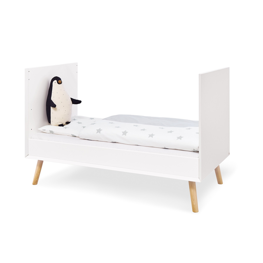 Con grande attenzione ai dettagli, l'azienda sviluppa, testa, produce e commercializza Pinolino la sua gamma di mobili, accessori e giocattoli per bambini di alta qualità e dal 1997 progetta gli spazi abitativi dei più piccoli con questo. I valori della famiglia, della felicità, della sicurezza e dell'individualità sono Pinolino alla base di tutto questo. La Garanzia Pinolino -Plus comprende l'estensione del periodo di garanzia legale a 10 anni dalla data di acquisto. Dimostra quanto l'azienda sia convinta dell'eccezionale qualità dei suoi prodotti. dettagli del prodotto: Struttura in legno a vista 3 germogli scivolosi Telaio a slitta regolabile in altezza 3 volte Convertibile a Junior letto e divano per bambini, 2 lati di conversione inclusi Gambe e reti per mobili di alta qualità in legno di quercia massiccio Dettagli tecnici: Colore: bianco / naturale Materiale letto: MDF, laccato Materiale pioli del letto e pedane: rovere massiccio, verniciato Superficie del divano: larghezza x lunghezza 70 x 140 cm Dimensioni: larghezza x lunghezza x altezza 79 x 145 x 87 cm Regolazione in altezza di 3 volte da 30 cm a 43 cm e 55 cm Max. Capacità di carico: 35 kg altezza libera da terra: 22 cm Incluso nella consegna: Culla Telaio a doghe Pagine di conversione Attenzione: Materasso e piumino non sono inclusi.