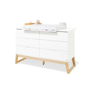 Dettagli del prodotto: Colore: bianco / natura il fasciatoio è rimovibile l'unità di cambio può essere montata a sinistra, al centro o sul lato destro 6 cassetti aden Maniglie da incasso Auto-soft-close Base di alta qualità tiger in legno massiccio di frassino Dimensioni e peso: Dimensioni con fasciatoio: larghezza x profondità x altezza 146 x 77 x 101 cm Dimensioni senza fasciatoio: larghezza x profondità x altezza 146 x 55 x 101 cm Altezza di cambio: 93 cm Materiale e cura: Materiale corpo: MDF, laccato Materiale piedi: frassino massiccio, laccato Pulire con un panno pulito e umido Incluso nella consegna: Cassettiera Unità di cambio Attenzione: la decorazione non è inclusa