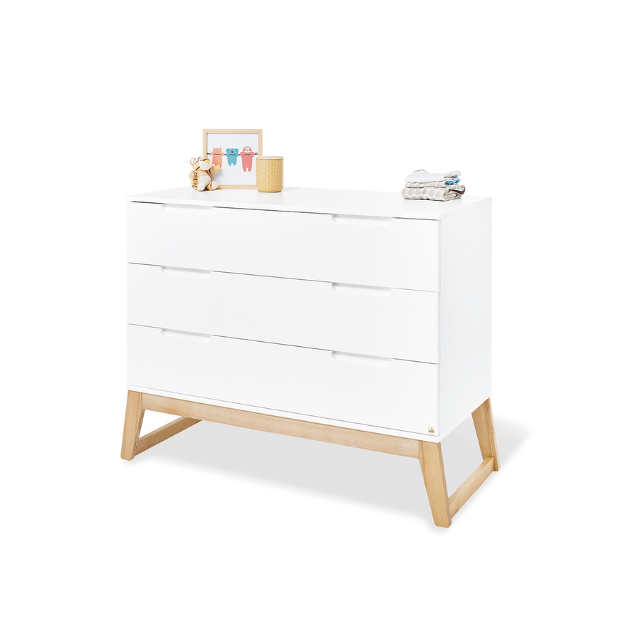 Con grande attenzione ai dettagli, Pinolino sviluppa, testa, produce e commercializza la sua gamma di mobili, accessori e giocattoli per bambini di alta qualità e dal 1997 progetta con essa gli spazi abitativi dei più piccoli. Così facendo, Pinolino è l'acronimo dei valori famiglia, felicità, sicurezza e individualità. La Garanzia Pinolino -Plus comprende l'estensione del periodo di garanzia legale a 10 anni dalla data di acquisto. Dimostra quanto l'azienda sia convinta dell'eccezionale qualità dei suoi prodotti. dettagli del prodotto: Colore: bianco / naturale Materiale corpo: MDF, laccato Materiale Piedi: frassino massiccio, laccato Dimensioni senza cambiare unità: larghezza x profondità x altezza 115 x 52 x 101 cm Dimensioni con unità di cambio: larghezza x profondità x altezza 100 x 77 x 101 cm Altezza variabile: 93 cm L'unità di cambio è rimovibile L'unità di cambio può essere montata a sinistra, al centro o a destra 3 Spinta aden Impugnature fresate da incasso Self-Soft-Close Incluso nella consegna: Comò Cambio unità Attenzione: la decorazione non è inclusa nella fornitura.