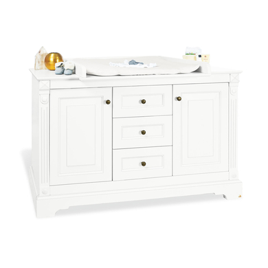 Pinolino sviluppa e realizza dal 1997 un'ampia gamma di mobili per bambini, accessori e giocattoli. Vasta gamma di assortimento nei tre stabilimenti. La combinazione vincente degli articoli, il buon servizio assistenza clienti ed i prezzi convenienti fanno di Pinolino il giusto Partner. L'ambizioso obiettivo della società è quello di ottenere la massima soddisfazione a tutti i livelli. La soddisfazione dei bisogni del cliente costituisce uno degli scopi primari dell'azienda. Scopri tutta la collezione Emilia. Amplia la cameretta con gli altri mobili della collezione. Dettagli del prodotto: Colore: bianco opaco Materiale: MDF, laccato Dimensioni: Ampiezza x Lunghezza x Altezza 150 x 78 x 102 cm Altezza fasciatioio: 94 cm Base fasciatoio removibile La base fasciatoio può essere montata a destra o a sinistra indistintamente. 3 cassetti 2 ante 2 ripiani regolabili in altezza 1 asta appendiabiti orizzontale Chiusura ammortizzata Con modanature ricamate Manici in metallo di ottima manufattura Nella confezione: Comodino Base fasciatoio Attenzione: Le decorazioni NON sono incluse nella spedizione!