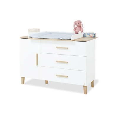 Dettagli del prodotto: Colore: bianco / natura il fasciatoio è rimovibile l'unità di cambio può essere montata a sinistra, al centro o sul lato destro 1 porta 3 cassetti aden Il cassetto aden può essere montato a sinistra o a destra, come desiderato 1 ripiano regolabile in altezza Chiusura automatica e chiusura morbida Piedi di mobili di alta qualità in legno massiccio di quercia Dimensioni e peso: Dimensioni con fasciatoio: larghezza x profondità x altezza 136 x 77 x 101 cm Dimensioni senza fasciatoio: larghezza x profondità x altezza 136 x 56 x 101 cm Altezza di cambio: 93 cm Materiale e cura: Materiale corpo: MDF, laccato Materiale piedi: rovere massiccio, laccato Pulire con un panno pulito e umido Incluso nella consegna: Cassettiera Unità di cambio Attenzione: la decorazione non è inclusa