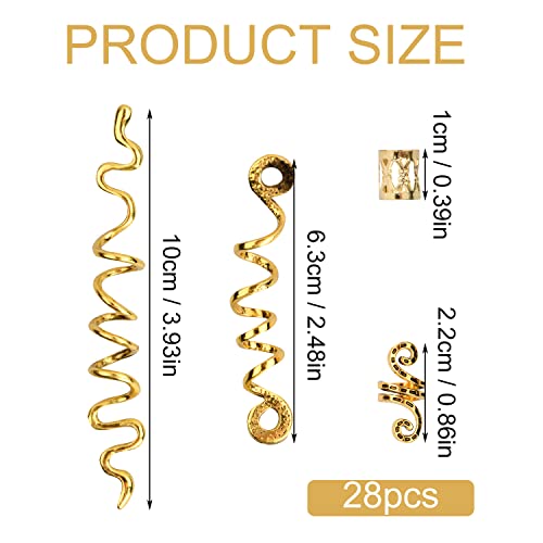 【Contenuto Della Confezione】Riceverai accessori per treccia d'oro da 28 pezzi, inclusi 3 diversi stili di fermagli per capelli a spirale e anelli per accessori per capelli regolabili da 25 pezzi. La quantità è sufficiente per le necessità quotidiane.