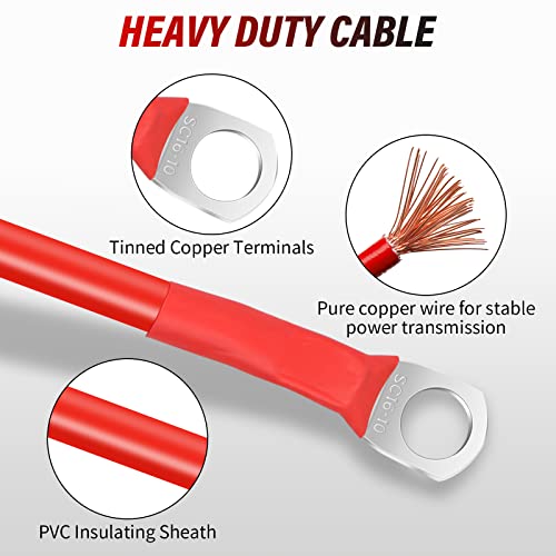 ❂【Vieni con terminali ad anello】 Cavo della batteria automatico in rame dotato di terminali ad anello in metallo da 10 mm su entrambe le estremità, per un facile collegamento ai terminali della batteria.