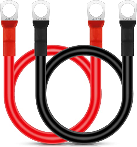 Pinsheng Cavo Batteria Cavi Inverter Batteria per Auto 2 Pezzi 50cm, 16mm² 12v Cavo Inverter Batteria Rosso e Nero 5AWG con Terminali Ad Anello Filo di Rame per Camion, Moto, Solare, Camper, Marina