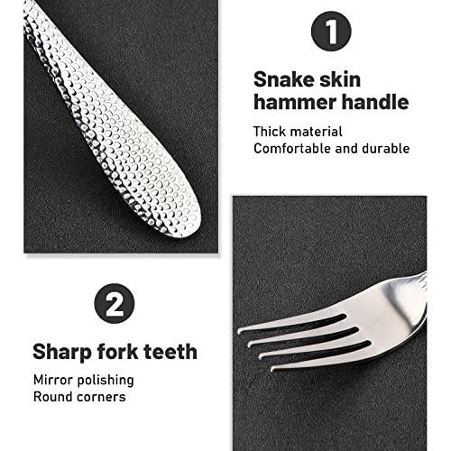 Pinsheng Forchette da Tavola, 12 Pezzi Forchette in Acciaio Inox con Lucidatura a Specchio e Manico Martellato, Posate Forchette Forchetta per Bistecca Cena Forcella per Il Ristorante Cucina in Casa