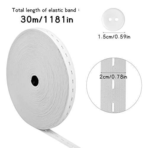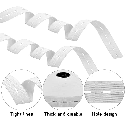 Pinsheng 30 Metri Fascia Elastica con Asola, Elastico con Asole per Bottoni Elastico con Occhiello per Pantaloni con Bottoni per Pantaloni Vita Jeans Gonna Abbigliamento (Bianco)