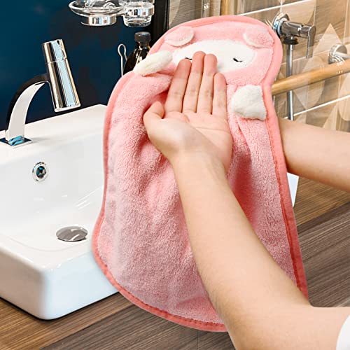 Pinsheng 3 Pezzi Asciugamano per Lavare Cartoni Animati, Asciugamano Assorbente Appeso a Mano, Simpatico Asciugamano, Asciugamani per le Mani di Simpatici Animali con Anello, per Cucina Bagno