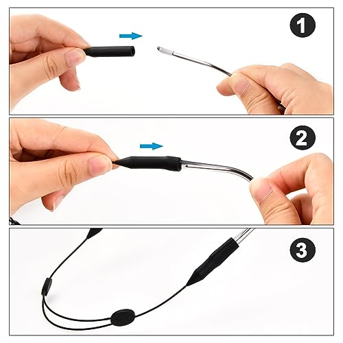 ♫ Comodo e resistente: Realizzato in cavo di acciaio inossidabile rivestito e silicone, questo cinturino per occhiali regolabile è progettato per offrire il massimo comfort e durata, consentendo di indossare gli occhiali senza alcun disagio.