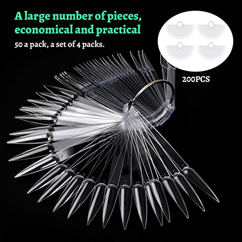 ❀ La confezione include: riceverai 4 set di bastoncini per nail art a forma di ventaglio, 200 pezzi in totale. La dimensione del campione di unghie è 13 x 1,2 cm/5,1 x 0,5 pollici. Ogni set viene fornito con un anello in metallo, facile da organizzare e trasportare.