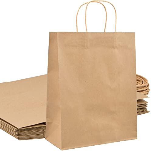 Pinsheng 12 pezzi Sacchetto di Carta Kraft, Sacchetto Regalo Kraft Marroni con Manici Intrecciati, Borsa Shopping Kraft Riciclabili per confezione, festival, vendita al dettaglio, merce (Large)