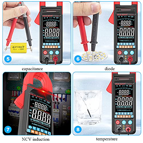 Pinza amperometrica digitale, 6000 conteggi Misuratore di tensione con intervallo automatico Multimetro Voltaggio Amp Ohm Tester per capacità Resistenza Diodi Continuità Duty-Cycle Etc