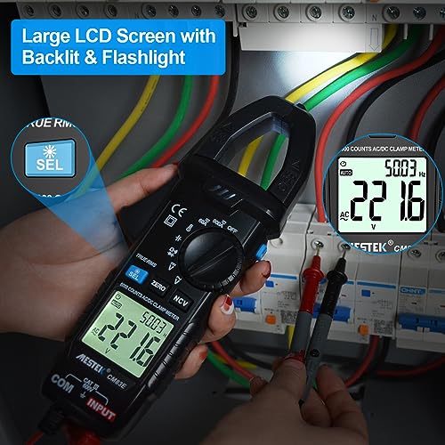 ✅ 【Facile da leggere】 La pinza amperometrica AC/DC ha uno schermo retroilluminato e una torcia a led in modo da poter vedere le letture quando si lavora in condizioni di scarsa illuminazione o scarsa illuminazione, come armadi elettrici, sotto gli edifici, dietro gli elettrodomestici e in altri spazi chiusi, La comoda torcia a LED illumina un'area scarsamente illuminata.