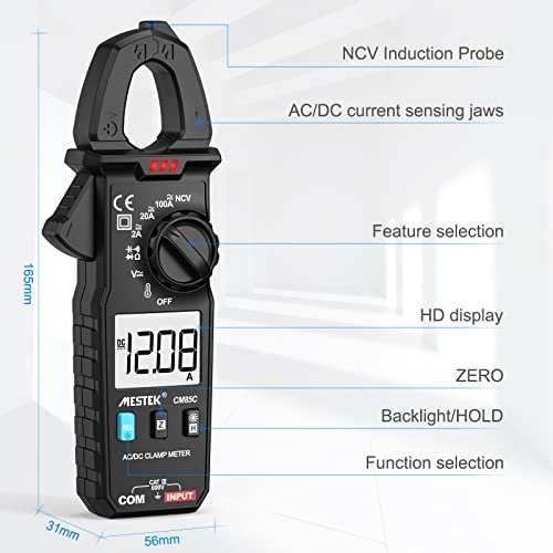 【ALTA SENSIBILITÀ AC/DC MISURATORE A PINZA】: AC/DC a 600 V, AC/DC a 100 A, resistenza, temperatura e termocoppia (℃/℉), duty cycle, frequenza (Hz) e test di capacità del diodo, continuità, senza contatto Rilevamento (NCV). Risoluzione ± 1 mA/0,1 mV Corrente/Tensione, perfetta per la casa, il laboratorio, la fabbrica, la riparazione auto e la riparazione elettrica.
