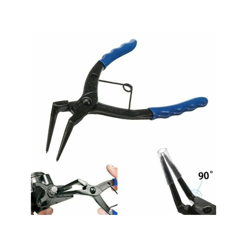 Descrizione prodotto Pinza per anelli elastici seeger interni con becchi ad angolo 90 gradi FS-19508 Pinza con becchi ad angolo di 90 gradi. Adatta per anelli elastici interni. Specifiche Lunghezza totale: 190mm Lunghezza becchi: 65mm Apertura massima: 35mm Nota bene. Il colore dei manici può variare