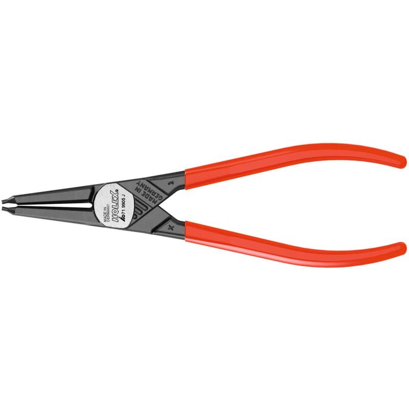Forgiata in un unico pezzo. Pinza bonderizzata nera. Manici rivestiti in plastica. Con punte di precisione a innesto. Forma C − becchi diritti. Uso: Per il montaggio e lo smontaggio di anelli di sicurezza. Norma: DIN 5256 C und D − für Innensicherungsringe. Dati tecnici Impugnatura rivestiti in plastica Materiale Acciaio al cromo-vanadio Superficie bonderizzata nera Punte intercambiabili no Tipo di prodotto Pinza per anelli di sicurezza Lunghezza complessiva, mm 320 Norma DIN 5256 C ⌀ Punta, mm 3,2 Forma delle ganasce diritte Impiego pinze per anelli di sicurezza Anello interno diritto Per anelli interni di sicurezza di ⌀, mm 85 - 140 Forma C