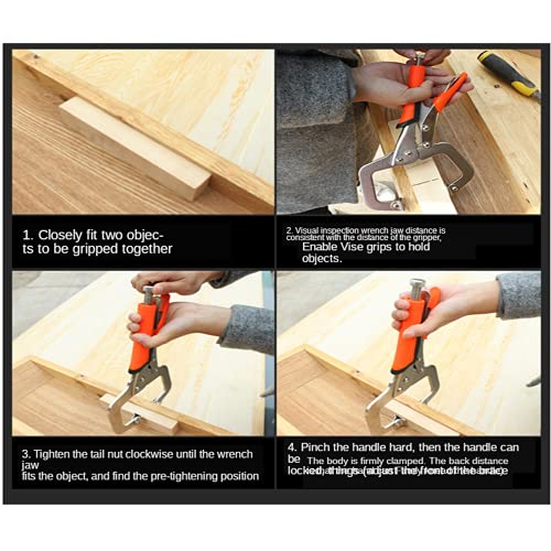 3. Design umanizzato: le pinze di bloccaggio con il cuscinetto girevole per bloccare i giunti in legno e i pannelli della carrozzeria dell'auto evitando danni. Design ergonomico dell'impugnatura con impugnatura morbida gommata, che riduce l'affaticamento della mano, è più comodo e senza sforzo e adatto per lunghe ore di lavoro.