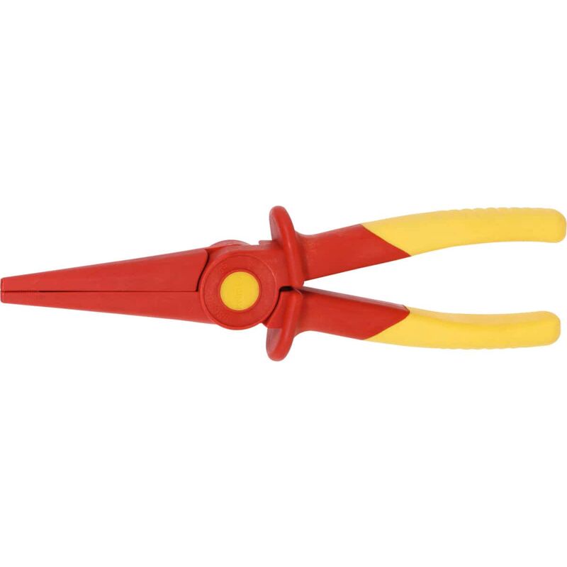 Pinza in plastica rinforzata con fibra di vetro, manici con zona in plastica morbida per una presa sicura. Becchi particolarmente lunghi, mezzotondi a punta. L'isolamento completo riduce il rischio di cortocircuito.Per eseguire lavori sotto tensione fino a 1000 V a norma DIN EN IEC 60900 / VDE 0682-201. Dati tecnici Tipo di prodotto Pinza a becchi mezzotondi Impugnatura con zona in plastica morbida Lunghezza complessiva, mm 220 Isolamento elettrico VDE 1000 V Norma DIN EN IEC 60900 / VDE 0682-201 Esecuzione ganasce dentati Antiscintilla sì Forma delle ganasce becchi a punta ovale interamente isolati sì Con tagliente no Lunghezza griffe, mm 75 Materiale Plastica rinforzata con fibra di vetro