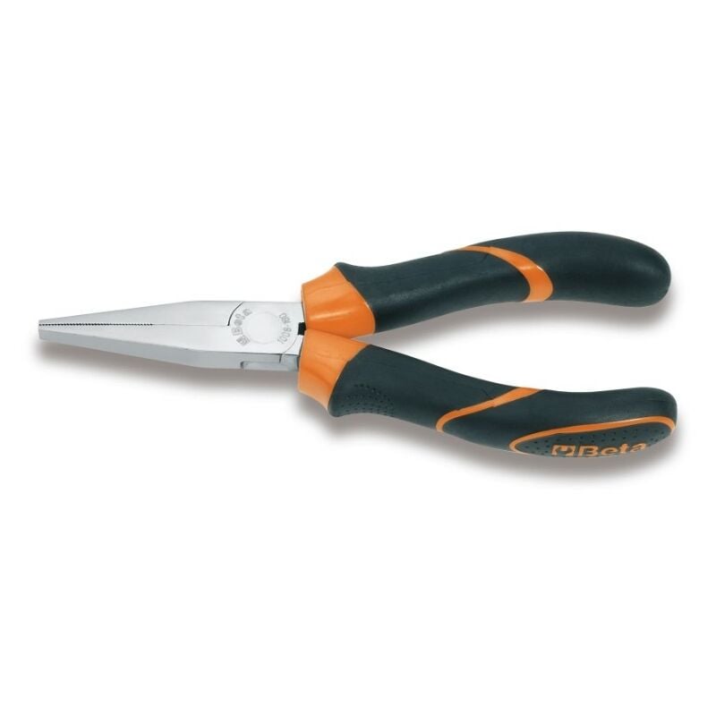 Pinze A Becchi Piatti Lunghi Zigrinati Impugnatura Bimateriale - Beta 1008BM PINZA A BECCHI PIATTI LUNGHI 1008BM 160 Impugnatura: bimateriale Lunghezza L mm: 160 L1 mm: 51,5 A mm: 15,9 A1 mm: 5,5 A2 mm: 1,5 S mm: 8,6 Peso g: 150 ISO 5745