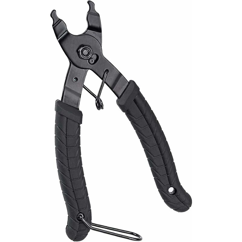 Applicabile - Compatibile con catene da deragliatore 6/7/8/9/10/11 velocità che utilizzano l'anello mancante, adatte per bici da strada, mountain bike e bici da corsa, ecc. [Alta qualità] Il i morsetti a catena sono realizzati in acciaio di alta qualità, robusto e durevole. L'impugnatura in gomma è ergonomica, consentendo di lavorare comodamente e applicare la giusta forza [Facile da usare] 2 in 1 pinze per catene da bicicletta aperte e chiuse, possono funzionare in modo rapido ed efficiente per scollegare e ricollegare i collegamenti in modo rapido, conveniente e non richiede molto sforzo [dimensione portatile] La dimensione è 16,5 x 6 cm (stato chiuso). La parte inferiore dell'impugnatura della pinza con chiusura, design compatto e portatile per il trasporto, può essere utilizzata come kit di attrezzi da viaggio per risolvere la maggior parte dei problemi con la bicicletta Descrizione del prodotto Pinza per catena Pinza per collegamento catena bici, Collegamento rapido per catena