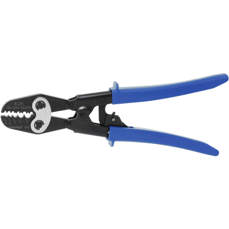 Grazie alla trasmissione a leva, l'arresto forzato garantisce un serraggio affidabile e una pressione di contatto uniforme. Manici in lamiera di acciaio con rivestimento in PVC. Uso: Per terminali lamellari maschio non isolati secondo DIN 46234. Dati tecnici Esecuzione impugnatura rivestiti in plastica Tipo di prodotto Pinza di serraggio Lunghezza complessiva, mm 325 Per sezione del filo, mm2 0,5 - 16