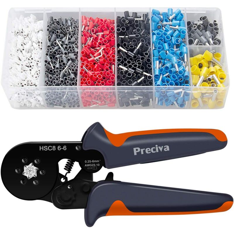 Pinza per puntale esagonale Preciva + set di 1900 puntali da 0,5 a 6 mm² per gli appassionati di fai da te Per crimpare puntali da 0,25 - 6 mm² alimentati lateralmente. Tiene più stretto delle pinze a crimpare quadrate. Autoregolazione alla dimensione del manicotto del nucleo desiderata Qualità di crimpatura costantemente elevata grazie al blocco positivo (sbloccabile);
