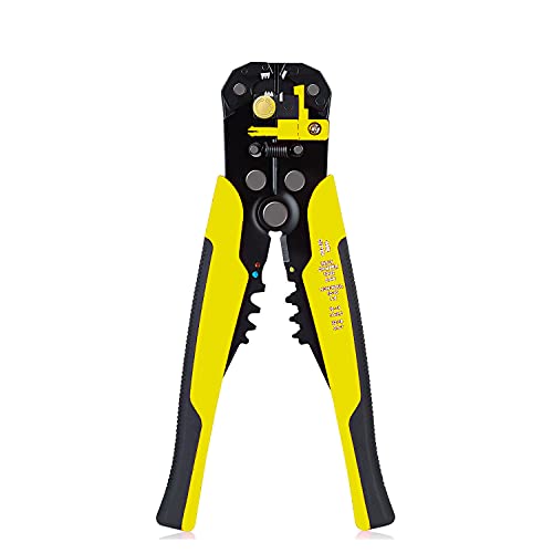 ★【Tagliacavi autoregolante】 Ganasce autoregolanti ideali per cavi in rame e alluminio da 10 a 24 AWG (0,2 - 6 mm²). Manopola girevole con micro rotellina per rimuovere il filo più piccolo di 24 AWG. Le spellacavi non danneggiano la parte metallica del filo elettrico. È possibile regolare la manopola in modo appropriato in base alle dimensioni del filo per garantire che lo spelafili abbia la tensione più adatta per rimuovere la guaina protettiva del cavo.