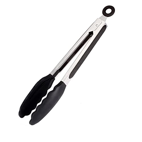 Pinza da cucina in silicone - Pinza da cucina in acciaio inox e silicone, con manico in silicone resistente al calore, per cuocere e grigliare insalate, grigliate e grigliate