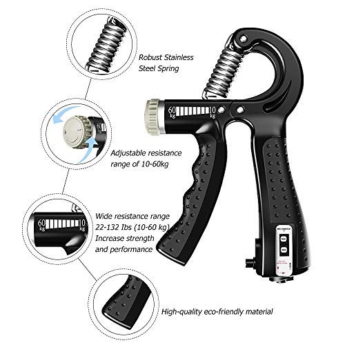 ★Smart Counting Grip Strengthener - Il trainer per il rafforzamento della presa aggiunge un contatore meccanico sul fondo, può registrare chiaramente il numero di volte da 0 a 99 mentre si fa la forza della mano, registrare il numero di volte che ci si allena ogni volta.