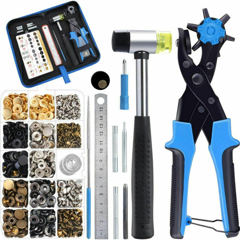 Multifunzionale - - Questa pinza perforatrice rotante ha 6 fori di dimensioni diverse con scala: 2 mm, 2,5 mm, 3 mm, 3,5 mm, 4 mm e 4,5 mm, solitamente utilizzati per praticare fori in pelle, plastica, tela, tessuto e selle ecc. [Doppio scatto, 4 colori] argento, bronzo, eneo e nero, in totale 100 set, 20 scatti per colore. Ogni set è composto da coperchio, zoccolo, colonna chiusa e montante. Il diametro del coperchio è di circa 12,5 mm/ 0,49 pollici e lo spessore è di 6 mm. Questi bottoni automatici sono adatti per tessuti leggeri, non per tessuti pesanti. [Rivetti a doppio cappuccio, 2 colori comuni (argento, bronzo)] - Questo set di 240 pezzi aggiungerà uno stile retrò e raffinato alla tua artigianato e vita in pelle. 2 dimensioni coperchi, colonne e basi sono 8 mm (5/16 di pollice);