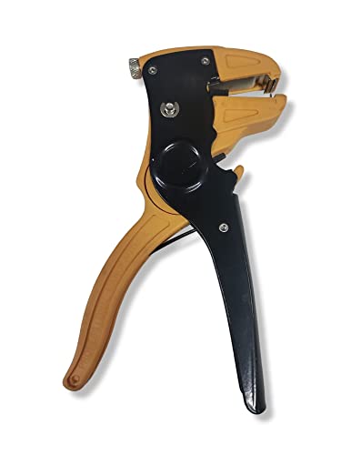 Pinza spelafili Frontale che combina le funzioni di spelatrice e di taglio in un solo strumento. La pinza spelafili può spellare fili unipolari, multipolari e fili piatti. La pinza è in grado di spelare cavi da 10 a 24 AWG. La Pinza è inoltre dotata di un regolatore di lunghezza e di una vite di regolazione della tensione per regolare la lunghezza e la resistenza del filo spellato;