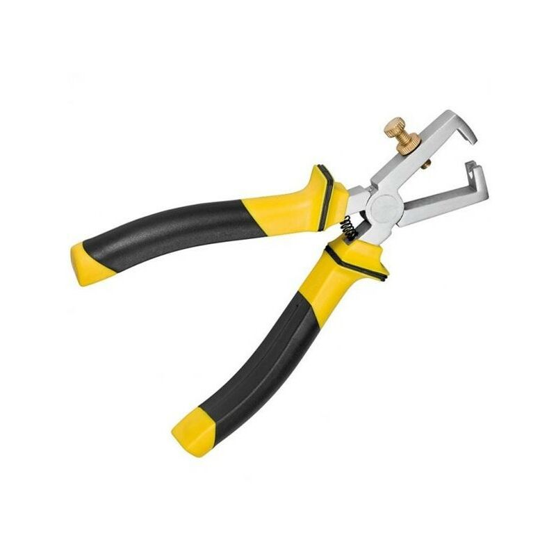 Pinza spellafilo con vite di regolazione. Superficie di presa zigrinata Materiale: Acciaio temperato Impugnature ergonomiche isolante antiscivolo Lunghezza dell'utensile 165mm