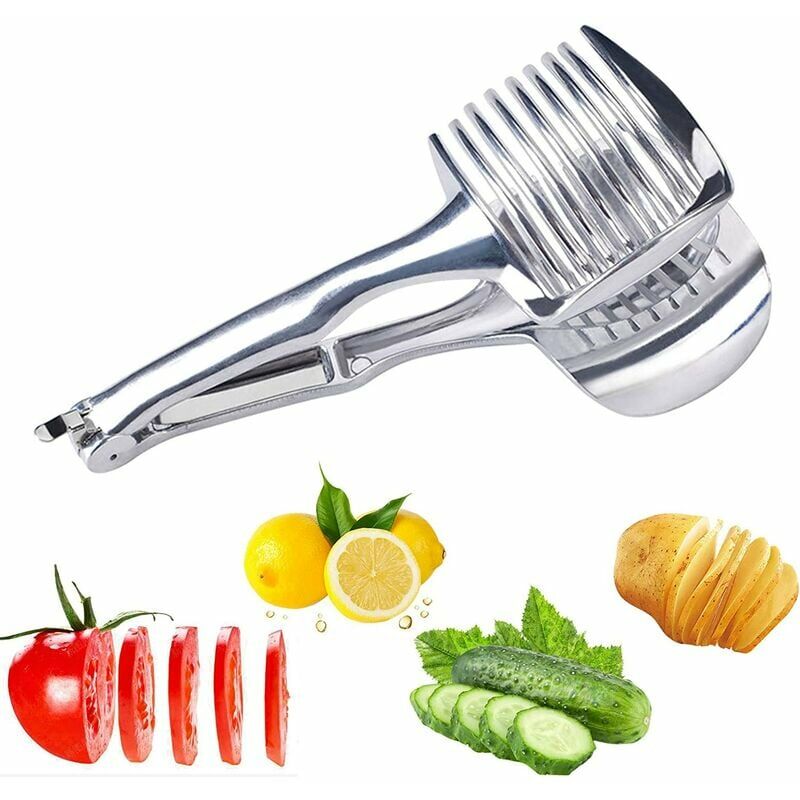 Strumento creativo e funzionale - Un grande aiuto in cucina. Con questo semplice e piccolo strumento, non solo puoi goderti tutti i tuoi frutti, ma anche risparmiare molto tempo per tagliare in modo uniforme e risolvere perfettamente le malattie ossessive forzate. 【Materiale di alta qualità】 Lega super sicura e alluminio resistente, ecologico e resistente, facile da pulire senza ruggine.Si consiglia il lavaggio a mano per garantire la longevità dei tagliaverdure 【Design ergonomico】È realizzato in robusto acciaio inossidabile. Facile da mantenere, protegge le dita dalle lesioni, viene fornito con una pinza per una presa sicura, in modo da poter tagliare frutta e verdura facilmente e comodamente. 【Design intelligente】 I punti affilati impediscono di scivolare e tagliare per una maggiore sicurezza in modo uniforme. Le connessioni dei perni sono robuste e durevoli e non possono essere allentate facilmente, evitando così improvvise scosse del contenitore e mantenendo la stabilità.