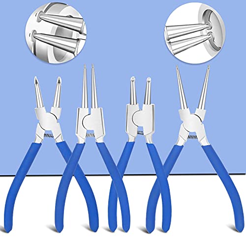 Set di pinze per anelli elastici 4 pezzi 7 pollici / 177 mm pinze per anelli elastici Set pinze per anelli elastici blu curve, per anelli di sicurezza interni ed esterni per smontare e trattenere 7'