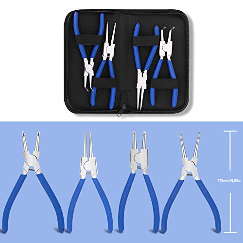 Pinze per Anelli di Sicurezza, 175 mm 4 Pezzi Pinze Per Anelli Elastici per Interni ed Esterni, Pinza di precisione Snap Ring Pliers Set per la Manutenzione Quotidiana Strumenti Pratici
