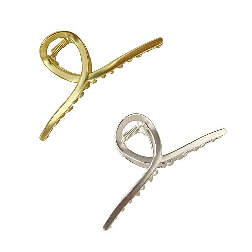 Pinze per Artigli 2/3 Pezzi per Donna Capelli Sottili Antiscivolo, Grandi Clip per Capelli in Metallo con Clip per Capelli, Forcina in Metallo, Pigro Semplice Copricapo in Metallo (oro + argento)