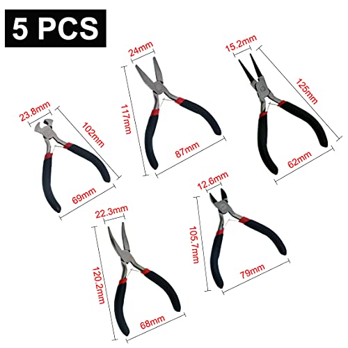 CYH Kit 5 pinze per la creazione di gioielli, 1 pinze a becco fine, 1 pinze a becco rotondo, 1 pinza tagliafilo, 1 pinze a becco curvo, 1 pinze a becco piatto, per la fabbricazione di gioielli fai da