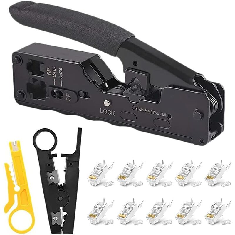 Strumenti di crimpatura professionali - I nostri strumenti di crimpatura RJ45 vengono utilizzati per crimpare Ethernet e linee telefoniche. Questo strumento di crimpatura è ampiamente disponibile per tutti i connettori CAT5, CAT5E, CAT6, CAT6A, CAT7, CAT7A per soddisfare vari requisiti di connessione. [MATERIALE DI ALTA QUALITÀ] Lo strumento di crimpatura del nastro è realizzato in acciaio resistente e durevole. Design ergonomico, funzione antiscivolo, tocco confortevole e lunga durata. 【Facile da usare】 Questo crimpatore universale può essere convertito in un crimpatore per jack di rete CAT6 e jack CAT7 regolando la vite di fissaggio. Il processo di crimpatura è rapido e facile da usare e può essere utilizzato con uno solo mano. [AMPIAMENTE UTILIZZATI] Gli strumenti di crimpatura RJ45 sono facili da riporre e utilizzare. Strumento di crimpatura per crimpare cavi di rete per case, uffici, laboratori, dormitori, officine di riparazione. È adatto a professionisti della rete e ai