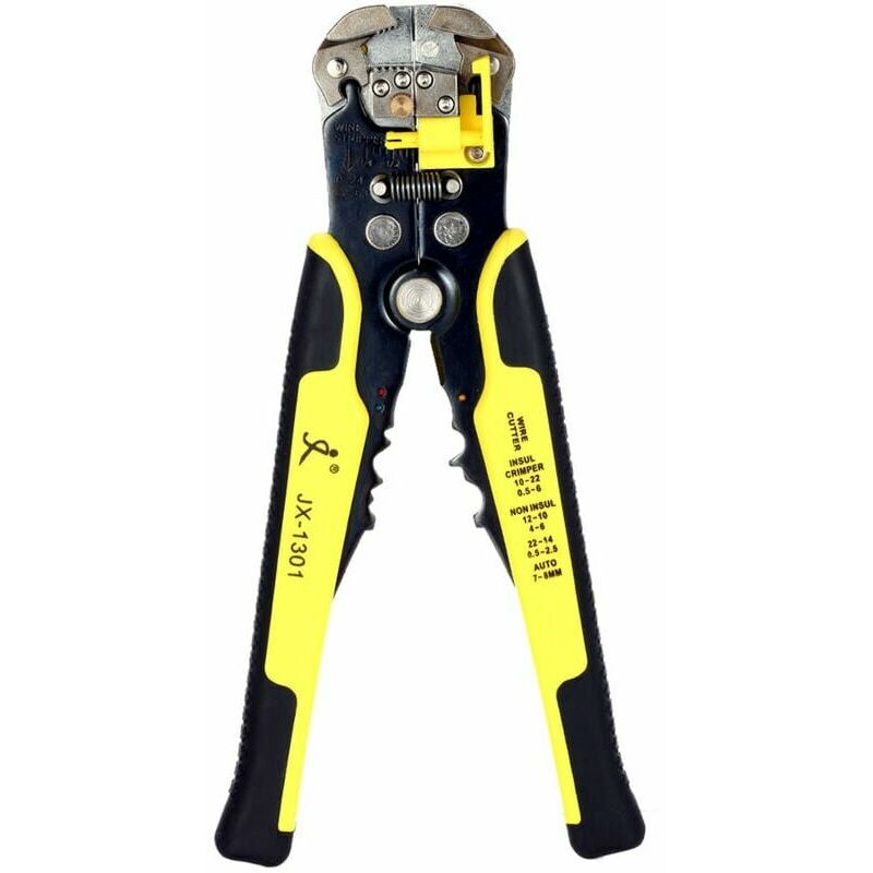 The Stripper Funzioni di comfort, efficienza e innocuità per le anime dei cavi. È facile da usare, basta tenere la maniglia e manipolarla una volta per staccare con successo la guaina del filo. Caratteristiche: Lo spelafili Funzioni di comfort, efficienza e innocuità alle anime del filo. Basta tenere la maniglia e manipolarla una volta per staccare con successo la guaina del filo. Ganasce in acciaio legato: durezza (HRC36-42) adatta per filo da 10 a 24 AWG (0,2-6,0 mm). Dispositivo di taglio: durezza ( HRC48-52), può tagliare fili di rame o alluminio. Può crimpare terminali isolati da 10 a 22 AWG (0,5-6,0 mm). Può crimpare terminali non isolati da 4 a 22 AWG (0,5- 6,0 mm). Con la vite di regolazione è possibile regolare la forza di spelatura. Caratteristiche: Materiale: metallo Colore giallo Dimensione del punto: 210 * 108 * 48 mm / 8,3 * 4,3 * 1,9 pollici Peso dell'articolo: 317 g / 11,19 once Formato del pacchetto: 285 * 125 * 35 mm / 11,2 * 4,9 * 1,4 pollici qt: 363g / 12.81oz