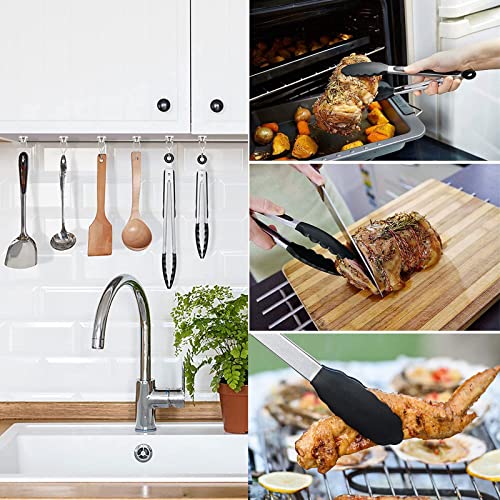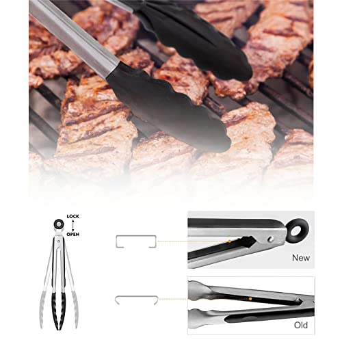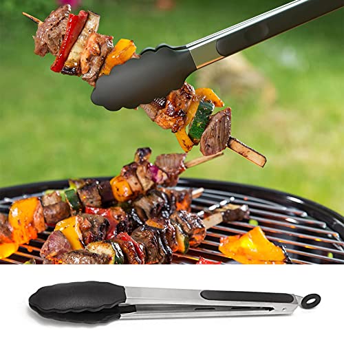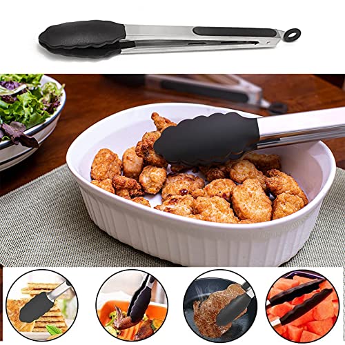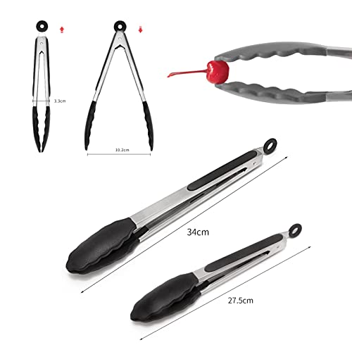 Set di 2 pinze da cucina resistenti al calore, Pinze de Barbecue Acciaio Inoxe Silicone di Alta qualità, Pinze da Cucina, Pinza Spaghetti, pinze per Insalata, pinze per Cibo, pinze per Barbecue(Nero)