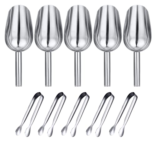 5 pinze per ghiaccio e 5 misurini in acciaio inossidabile, set di pinze per servire cibo per dolci, caffè, secchiello per ghiaccio, bar, cucina, matrimoni, feste di compleanno