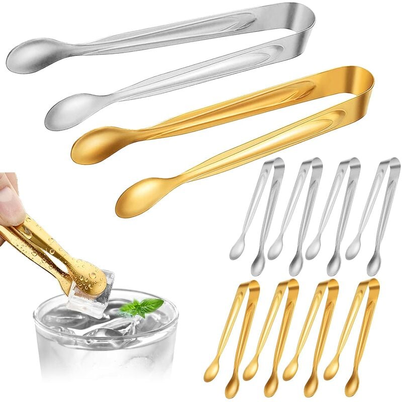 Colore come mostrato Dimensioni: 10,5 * 1,6 cm Peso: 30 g Set di pinze per cubetti di ghiaccio in acciaio inossidabile: riceverai 8 pinze per zucchero, 4 pinze per gelato dorate + 4 mini pinze per zucchero a velo argentate. Abbastanza fermaglio per caramelle per le tue esigenze. Le pinze professionali per cubetti di ghiaccio sono adatte per feste e matrimoni, evitando il contatto delle mani con il cibo. Pinza per caramelle per gelato, zucchero, biscotti, zollette di zucchero, olive, mini marshmallow, formaggio e altri piccoli oggetti. Materiale: Le pinze per il ghiaccio sono realizzate in acciaio inossidabile 304 di alta qualità per uso alimentare, resistente, anticorrosivo e salutare. Le pinze da zucchero sono di dimensioni simili al palmo della tua mano. Il manico della pinza da zucchero è flessibile, si sente bene in mano e la stabilità è buona, nessuna flessione delle pinze una volta afferrato qualcosa.Set pinze per ghiaccio in acciaio inossidabile, aspetto elegante, eccellente