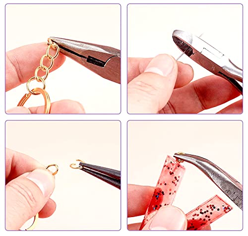 【Cosa otterrai】 Riceverai 4pinze per la creazione di gioielli, tra cui pinze ad ago, pinze a becco tondo, pinze da taglio e una Pinze piegate, un apri anello di salto, che è sufficiente per la creazione di gioielli.