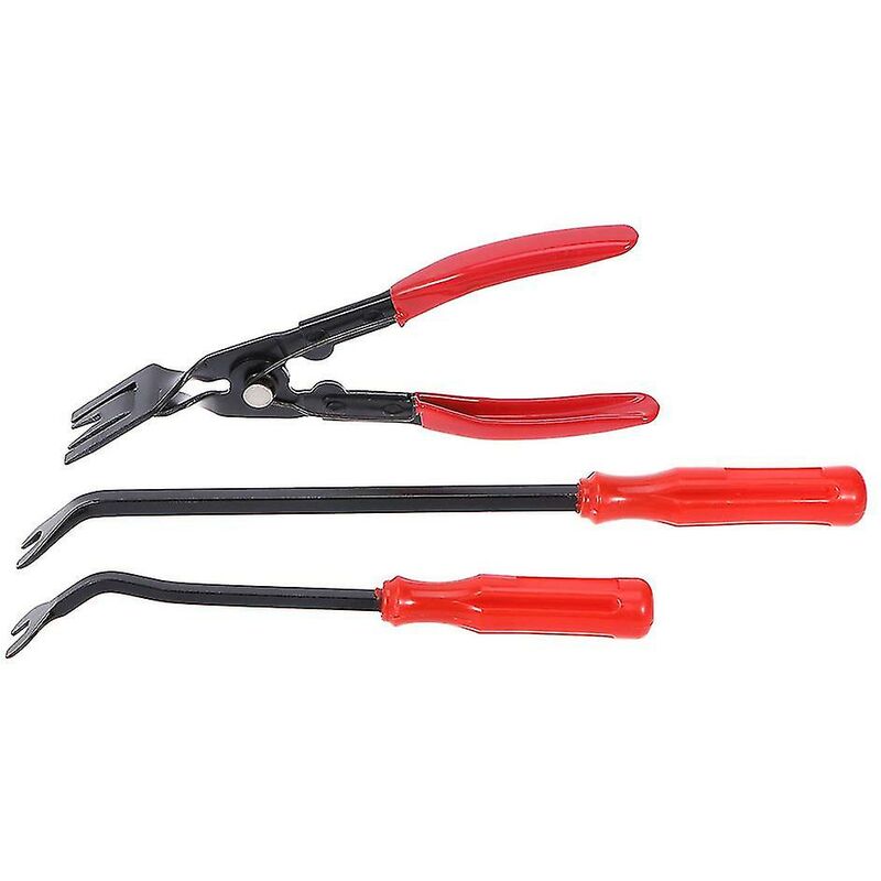 Realizzato in acciaio, solido e senza deformazioni, lunga durata. Consente la rimozione rapida e semplice dei pannelli delle portiere dell'auto, delle clip di rivestimento e altro ancora. Ampiamente usato nella riparazione di auto, nella manutenzione dell'auto e nel fai-da-te. Caratteristiche - Colore: come mostrato. - Materiale: acciaio. - Dimensioni: circa 23 x 5 x 0,8 cm. - Realizzato in acciaio, resistente e di lunga durata. - Design speciale del naso per evitare la rottura o lo strappo dei pannelli durante lo smontaggio delle fodere. - Pinza trattata termicamente con corpo annerito e manico temprato e rivestito. Durevole e antiruggine. - Rimuovi rapidamente gli elementi di fissaggio in plastica dai pannelli delle portiere della maggior parte delle auto, camion, ecc. e non li graffi. - Facile da usare e portatile. Lista di imballaggio 3 x strumenti per la rimozione degli interni dell'auto