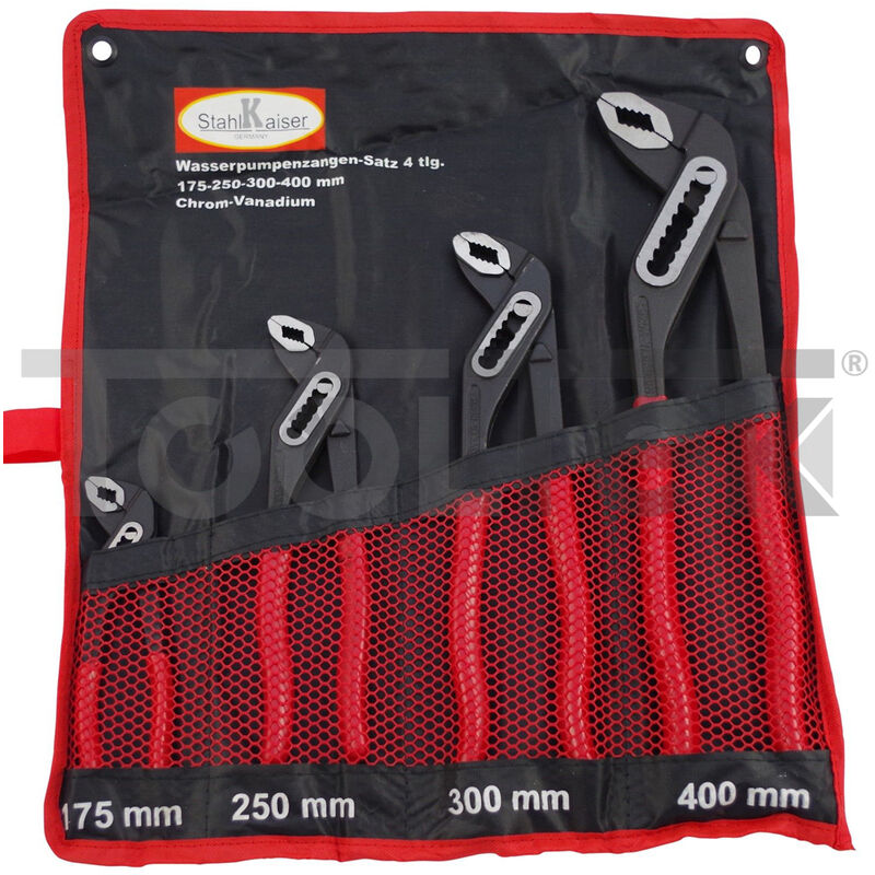 Utilissimo set di pinze 4 pezzi .Composta da:n° PINZA POLIGRIP 175 mm n° PINZA POLIGRIP 250 mm n° PINZA POLIGRIP 300 mm n° PINZA POLIGRIP 400 mm Apertura regolabile con meccanismo a scorrimento e fermo in posizione.Manici rivestiti in gomma. Prodotto di qualità.